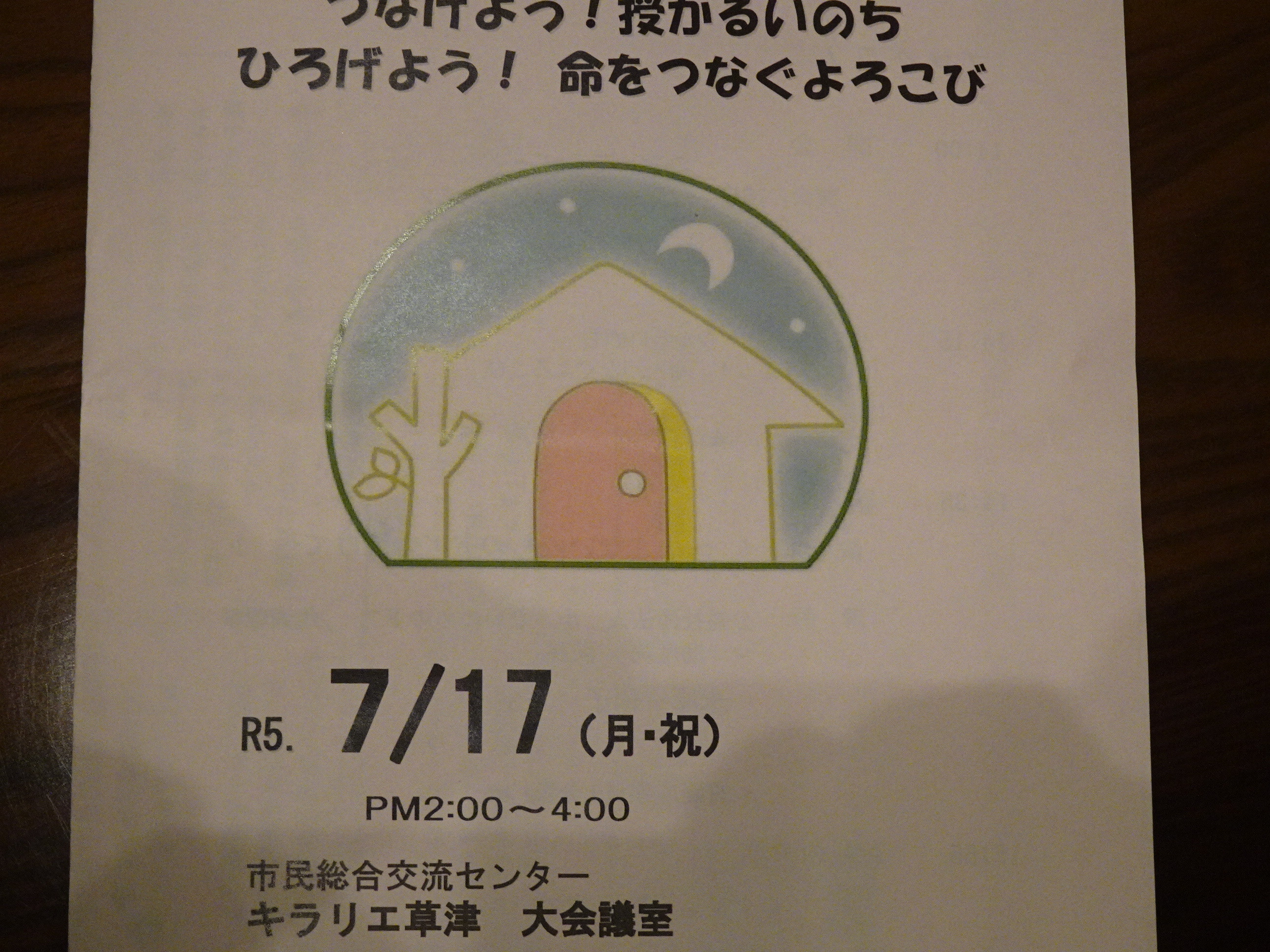 本日、午後から草津市市民総合交流センターのキラリエ草津で滋賀県、草津市、滋賀県教委、湖南市教委、滋賀県民児協連、滋賀県助産師会、NHK大津放送局、中日新聞など12団体が後援した生命尊重のつどいが開催されました。